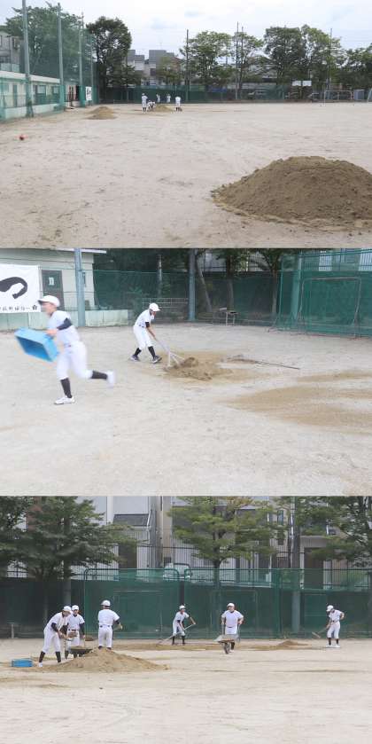 本日放課後、野球部員が練習の前にグラウンド整備をしてくれました。