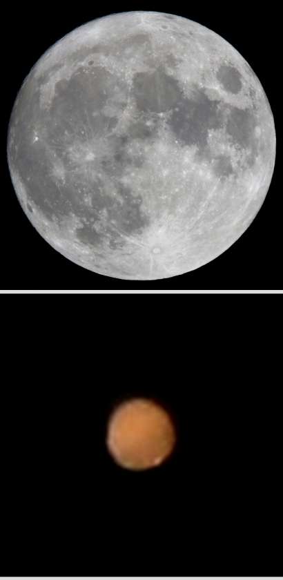 綺麗な「月」とオレンジ色に輝くの「火星」が目立っていました。