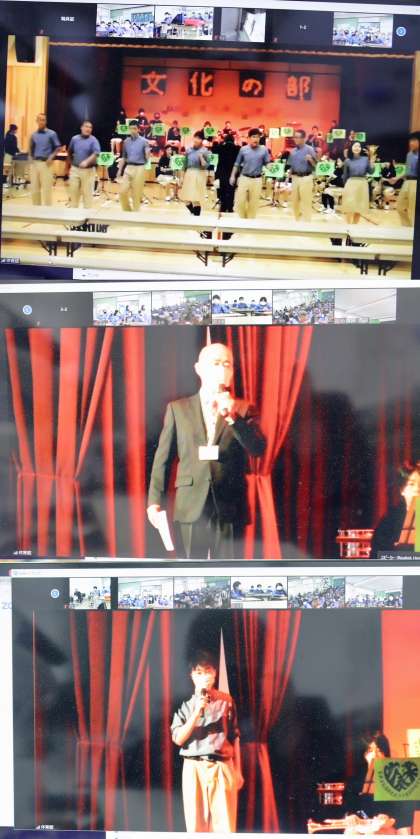 体育館で開会の挨拶の後、生徒会本部によるオープニングダンス、その後吹奏楽のステージがありましたが、全て無観客で行いました。オンラインライブ配信を教室で視聴しました。
