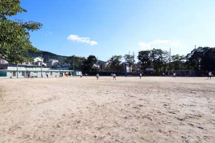水はけのよいグラウンドですが,雨の流れた後が一面に残っています。