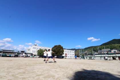 体育の授業はソフトボールの練習(キャッチボール)をしていました。