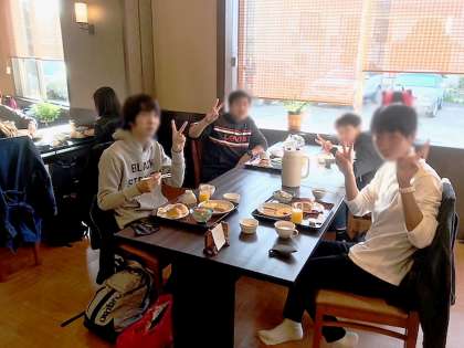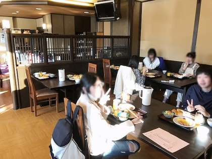 朝食です。少し、眠そうな生徒もいますが、みんな元気です。