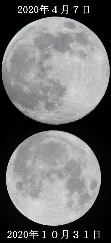今年一番大きい月(4月7日)(地球に一番近い位置にある満月)と比べてみました。