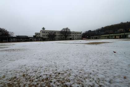 醍醐中学校は京都市の南部にあり、雪が積もることはあまりありませんが、今朝はグラウンドがうっすら白くなりました。