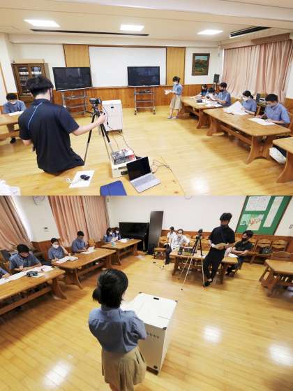 本日放課後、会場となる「いきいき交流ルーム」でリハーサルを行いました。