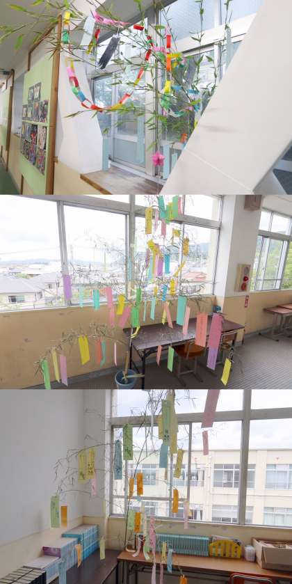 今夜は「七夕」です。笹に「自分の願い」を書いた短冊を飾りました。