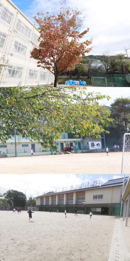 特にグラウンド北東角の「ハナミズキ」が「赤く」なっています。