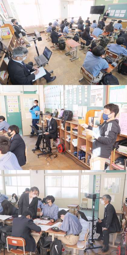 他校の先生も来られる計画でしたが、コロナウイルス感染症対策でオンラインでの参加になり、見えるところに居るのは校内の先生方と教育委員会の先生だけでした。