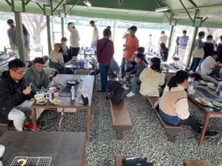 BBQがほぼ終了し、出発に向けて各テーブル後片付けをしています。