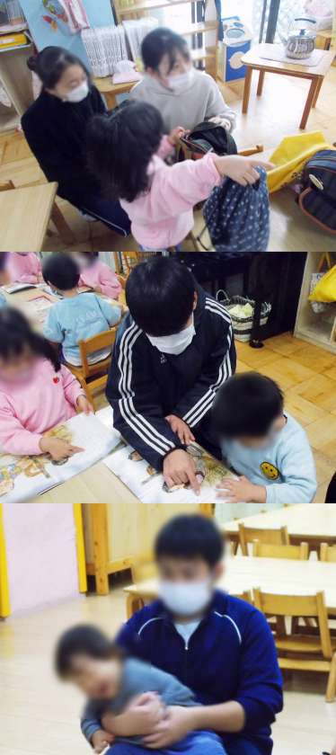 保幼中の交流事業の一環で、3年生の家庭科の授業としての「保育実習」です。