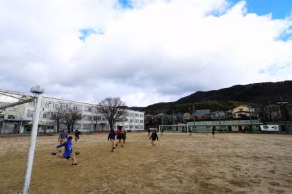 昼休みのグラウンドでは、1・2年生が寒さに負けず楽しんでいました。