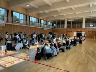 結団式を終え、学校を出発しバスに乗り込みます。