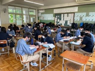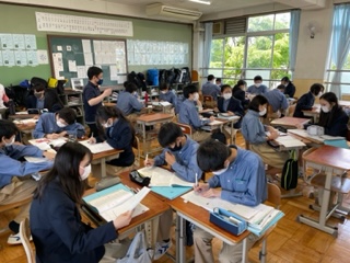 数学では一斉に説明を聞き、問題を解いた後にグループで教え合い活動にも取り組んでいます。
