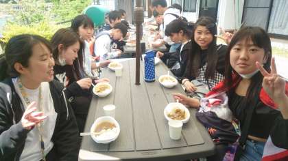 ちょっとスパイシーなカレーに舌つづみを打ってます。