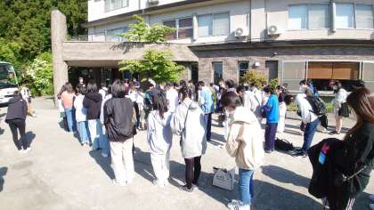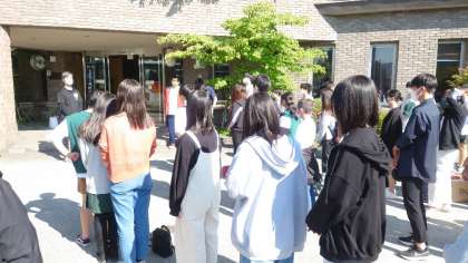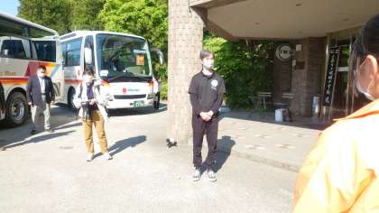 宿の前で退館式を行いました。とても名残り惜しいです。