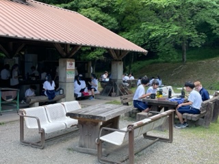 予定を変更し、日陰でお弁当を食べています。