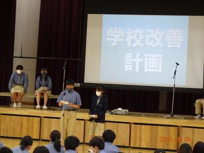 まずは,各学級で話し合ってきた『学校改善計画』を学級代表が発表しました。