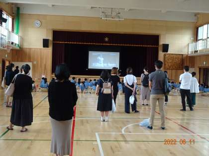 1年生は,体育館で学年道徳をしました。