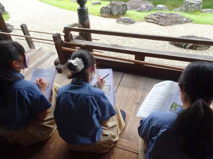 自然の風、水の流れる音を感じながらの学習です。