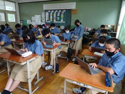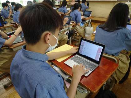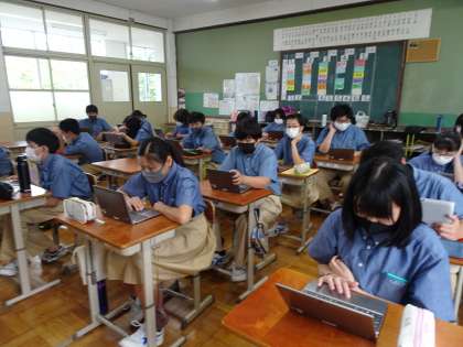 1年生はGIGA端末を使って、学校評価アンケートに取り組みました。
