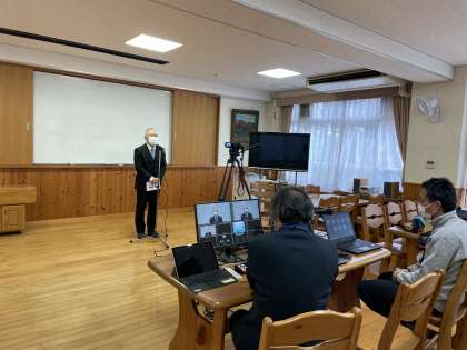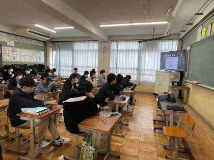 各教室で学習を深める前に本日、校長先生によるオンラインでの人権講話がありました。