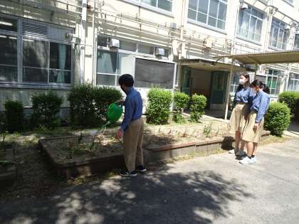 昼休みに、環境委員の活動の一つである「水やり」をしてくれていました。