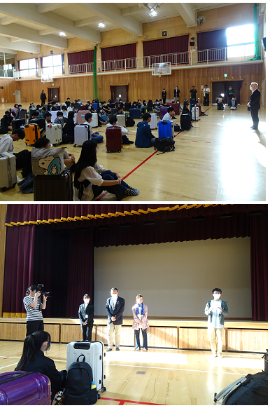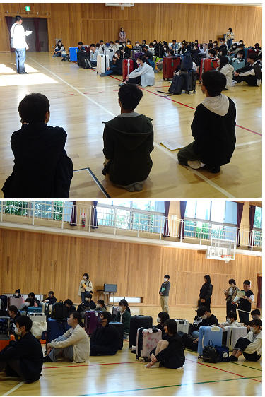 出席者の集合と健康観察を終えた後、修学旅行 中央委員が司会を務め、結団式を行いました。