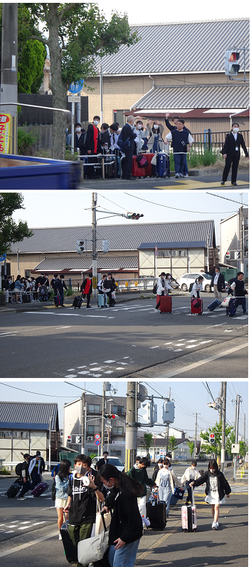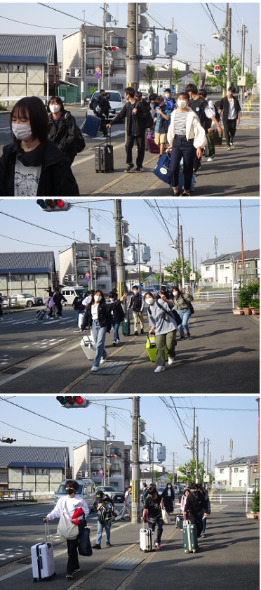 ウキウキした気持ちと荷物を持って、バスへ移動しています。