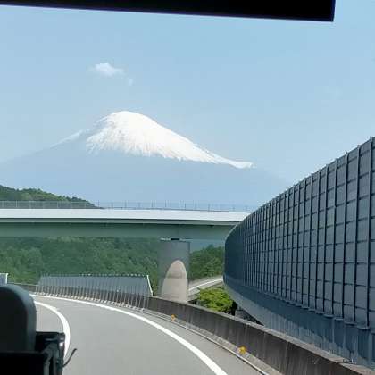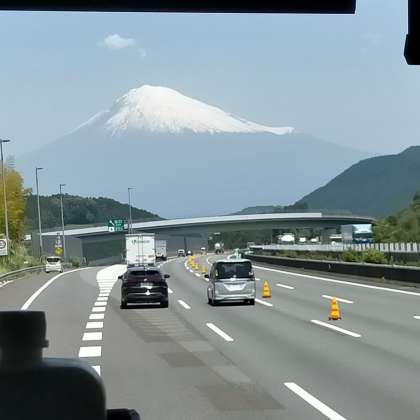 バスから見える富士山の姿に、みんな興奮しているようです。