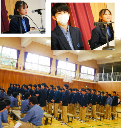 司会もスタンバって、3年生の発表がいよいよ始まります。