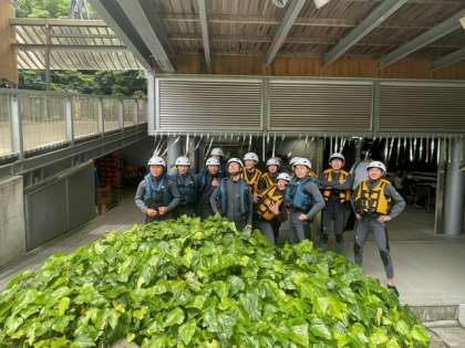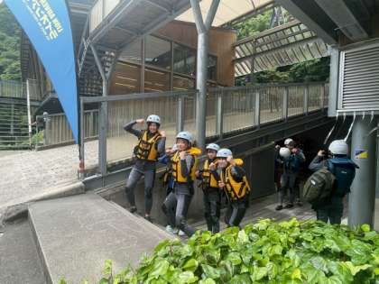 ウエットスーツに着替えたら、吉野川上流のスタート地点へバスで移動します。