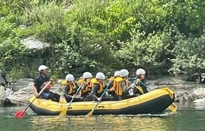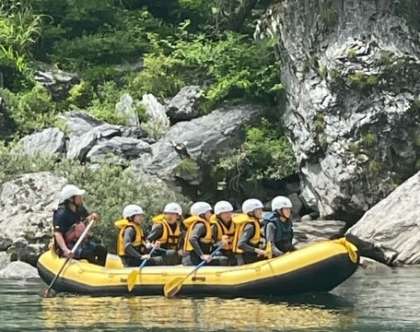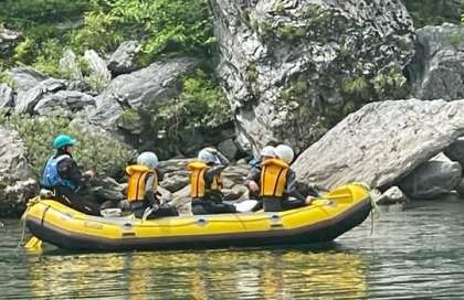流れのなだらかな所でしばらくオール扱いの練習しています。