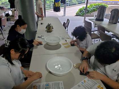 クラフト体験組は、天然石でオリジナルネックレスを作りました。