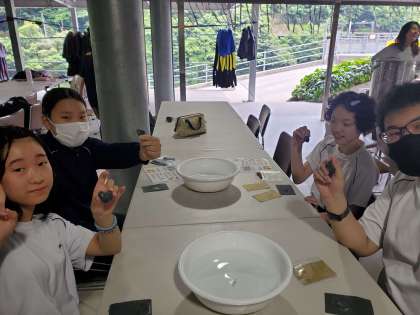 何時間もかけて、みんな一所懸命に石を磨き上げました。