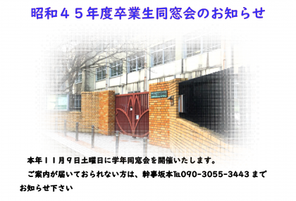 昭和45年度卒業生同窓会のお知らせ