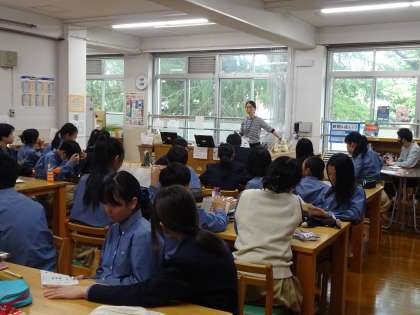 まず前半に学校図書館司書の先生から「図書館の使い方」や「図書の配架の仕方」など冊子を見ながら丁寧に教えていただきました。