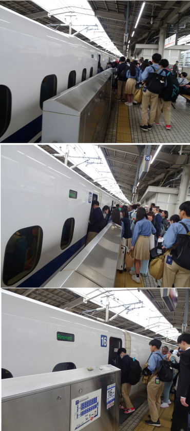 新幹線が入構してきて、全員がスムーズに乗車していました。