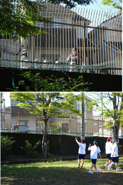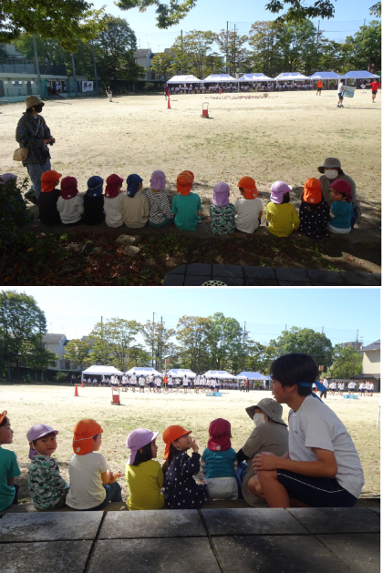 しばらくすると、保育園児たちは北側の門まで回ってきてくれ、中学生の競技を元気いっぱいに応援してくれました。