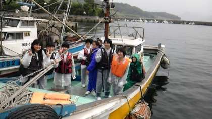 松浦に到着後、体験活動用の体操服に着替えました。颯爽と船に乗り込み、いざ出航。大漁旗をはためかせて帰ってきます。インストラクターさんや松浦党の方の指示によく従って、くれぐれも危険の無いように。