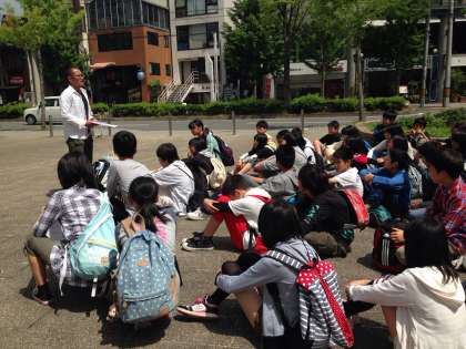 烏丸御池での乗り換えもスムーズに行い、府立植物園北山門前に到着です。マップをもらって、園内散策がいよいよスタート。思い思いの場所へ散らばって行きます。次の集合は中央の大芝生地に11時45分です。それにしても、北区の方はお天気が良いようですね。今日一日で真っ赤赤、真っ黒黒になりそうだ。