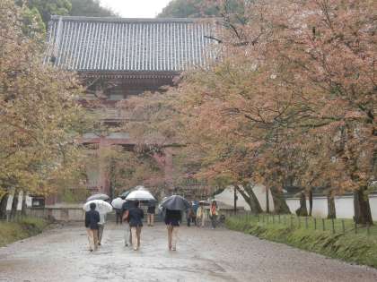 新年度が始まった次の週にやって来る修学旅行。中学校最大の行事です。1・2年生もその期間に校外学習に出かけます。あいにく先週末から花冷え、花散らし、の散々な天気が続きますが大丈夫。期間中はポカポカの晴れマークです。写真は2年生が先週、醍醐寺さんへ3学年分の雨を引き受けに行ってくれた時の様子です。