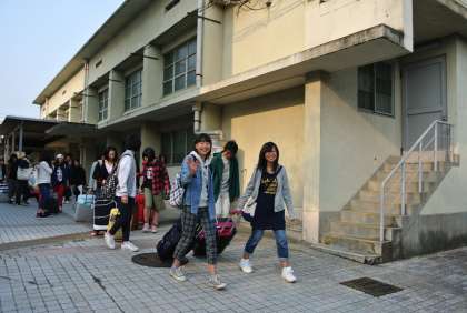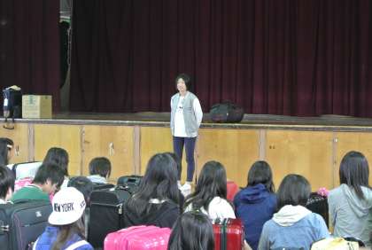 ピンと張りつめた朝の冷気が心地良い体育館。参加予定者全員が一人の遅刻もなく集合完了です。予定通り7時から結団式を行いました。これから2泊3日の沖縄旅行が始まります。予報では沖縄は今日から夏日に突入とのこと。さあ、出発です。皆さん、行って来まーす!
