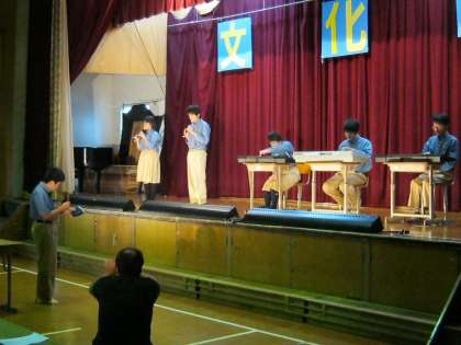 合唱コンクールのトリを務めるのは5組です。今年は総勢6名となった5組は夏休み以来合奏に取り組んできました。リコーダー、オルガン、打楽器での合奏は、時には、叱られながらも練習した来た甲斐があり、素敵な演奏になりました。やるね!