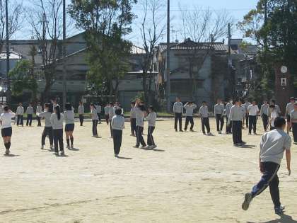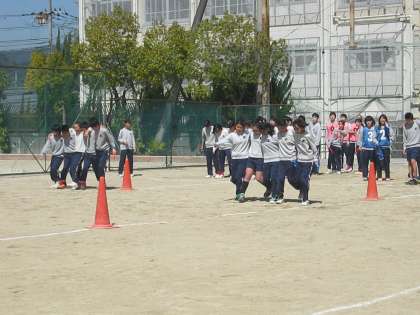 3,4時限は2年生の学年レクです。種目は5人6脚とドッジボール。意外に難しいこの種目。悪戦苦闘するチームがあれば、異常に速いチームも。走る方も応援する方も力が入ります。2種目目はドッジボール。男子の投げるボールがすごく速い。女子も素早く逃げたり受けたり。どちらも迫力満点です。