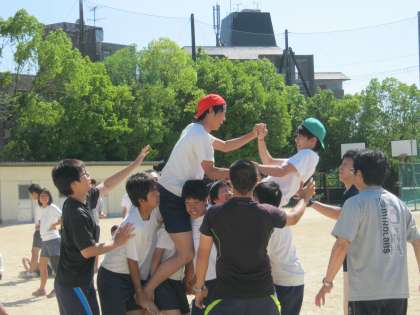 今日6月2日の5・6限は体育大会の予行です。日差しは強いものの気温は23度、涼しい風が吹いて予行日和です。実戦練習の初めは女子の3人4脚。バトンを渡し終わった後に転倒トリオ続出!続いては男子の騎馬戦。やはり3年生の戦いは迫力があります。この一騎打ち、勝敗が決するのに1分以上もかかりました。