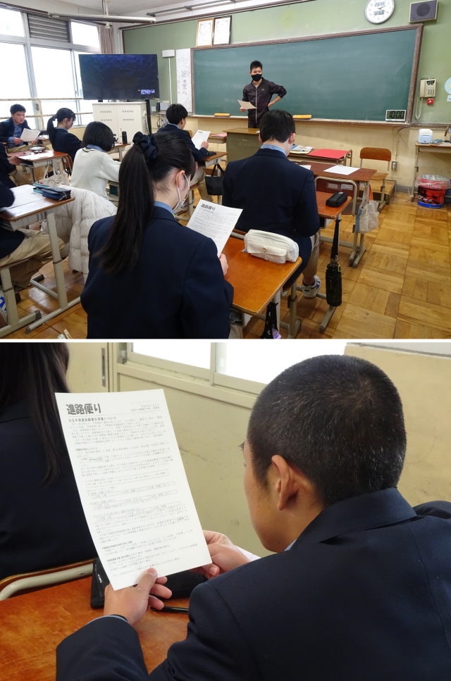 本日、3年生は公立中期選抜の願書を配布し、記入に関しての注意事項が伝えられました。願書は受験に関わる大切な書類ですので、必ずご家庭で内容を確認し提出に向けて準備を進めてください。