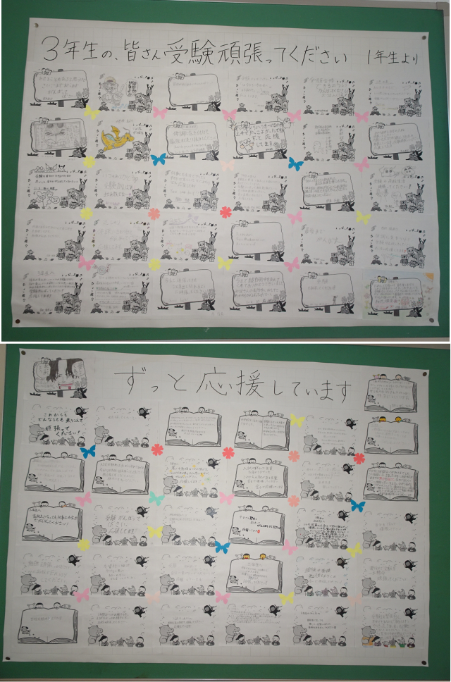 次々に進路が決定していく仲間を見守りながら、皆さんは自分の目標に向けて努力を積み重ね、ここまで本当によく頑張ってきました。これまでの努力を自信に変えて、明日はどうか全力を尽くしてきてください。皆さんなら、きっと大丈夫です。合格を信じています。