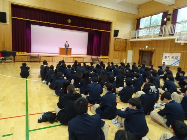 3年生が卒業した後、1・2年生のみで迎える修了式となり、広い体育館にはいつも以上に空間が感じられ、どこか寂しさを覚える雰囲気でもありました。しかしその一方で、在校生一人一人が次の学年へと進む自覚を胸に、真剣な表情で話に耳を傾ける姿が印象的でした。