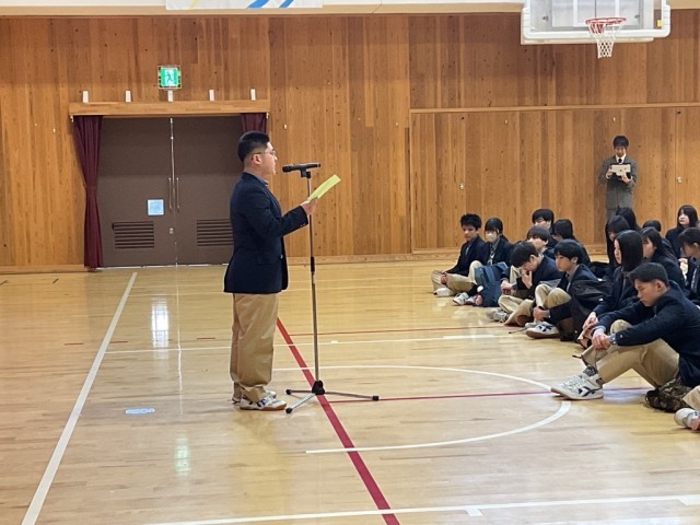 生徒のみなさんが、校長先生のお話をしっかりと集中して聞く姿が素晴らしかったです。