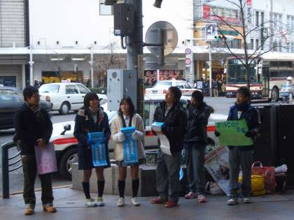 (写真は,生徒会本部の人たちの四条河原町での募金活動の様子です)